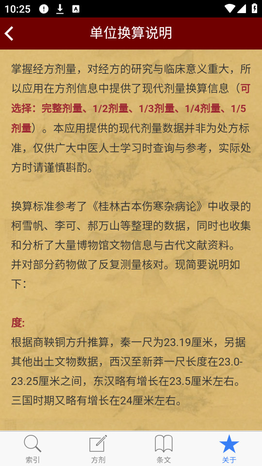 很早就有想法做一款经方剂量换算工具,项目启动至完工,断续也一年有余了,大量时间花在了经方与条文的校对以及汉代度量衡的考证和研究上,期间家人也给予了大量的帮助。然而医学是最需要严谨的,作者自知学识与能力有限,诚恐误人,如有错漏,恳请指正,我们将及时更新。