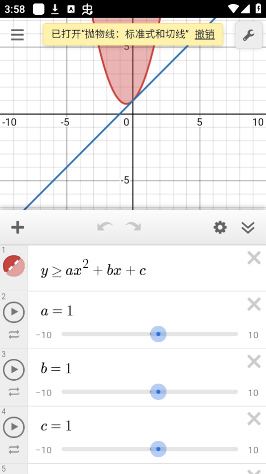 从直线和抛物线,到回归和导数,各种方程式都能即时出图。
