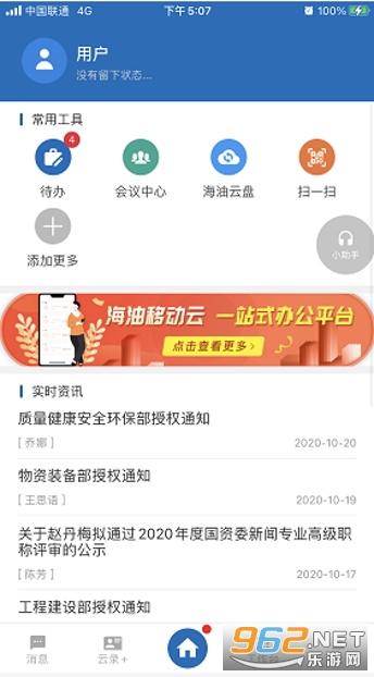 中国海油移动云最新版本是一款功能十分强大的商务办公软件,这款软件有着十分强大的功能,可以在线进行办公,有着信息咨询、会议中心、石油圈等功能,让用户可以轻松无忧的使用,给您带来绝佳的线上办公体验,还在等什么,快来下载吧!