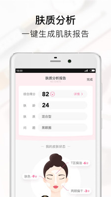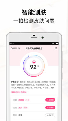 2.AI科技,一键测肤:自拍测肤,联合上海皮肤医院为你提供专业的肌肤报告;黑头、痘痘、黑眼圈、干涩肌肤问题一网打尽。