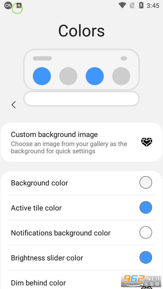 快速设置面板 -为快速设置面板的背景或前景(图标)选择其他颜色。 -更改亮度滑块的颜色。 -带有您当前设备信息的有用图标 -选择要显示在阴影下的个人头像。 -在许多图块图标形状(圆形,正方形,泪滴,渐变等)中进行选择 -(专业版)更改快速设置网格布局(即,列数和行数)。