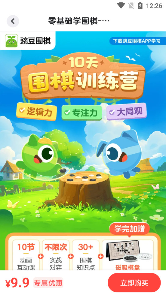 豌豆围棋是面向4-12岁孩子的围棋素养AI课,秉承“学围棋练思维,好算力练好大脑 ”的理念,并结合自主研发的AI交互系统和丰富的国学典故动画,为孩子带来0基础入门的围棋启蒙课。