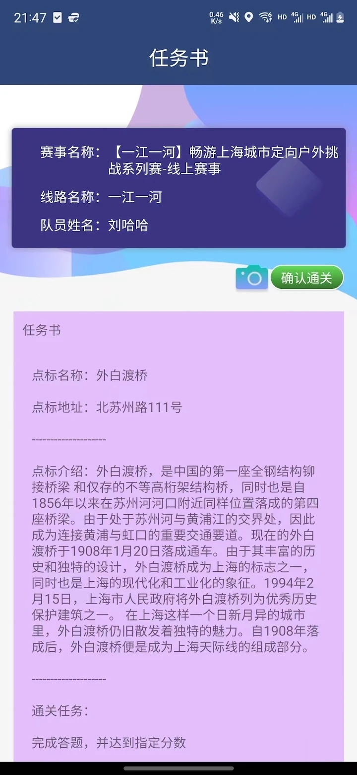 智能扫码:任务扫码功能简化了任务领取流程,提高了参赛者的效率。