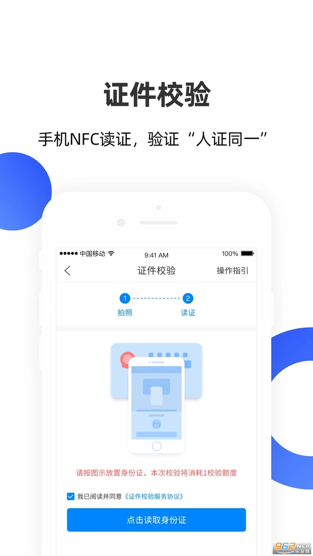 —搭配认证徽章使用,支持读取校验二代身份证件信息资料有效性,一键比对身份信息与人像照片匹配校验;