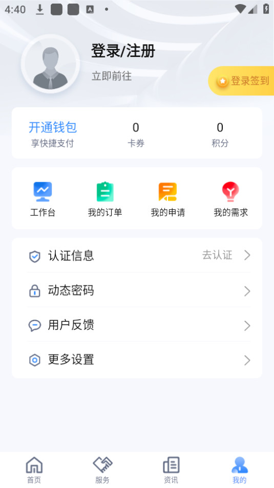 2、成功登录后,在“我的”页面中,点击“认证信息”前往认证;