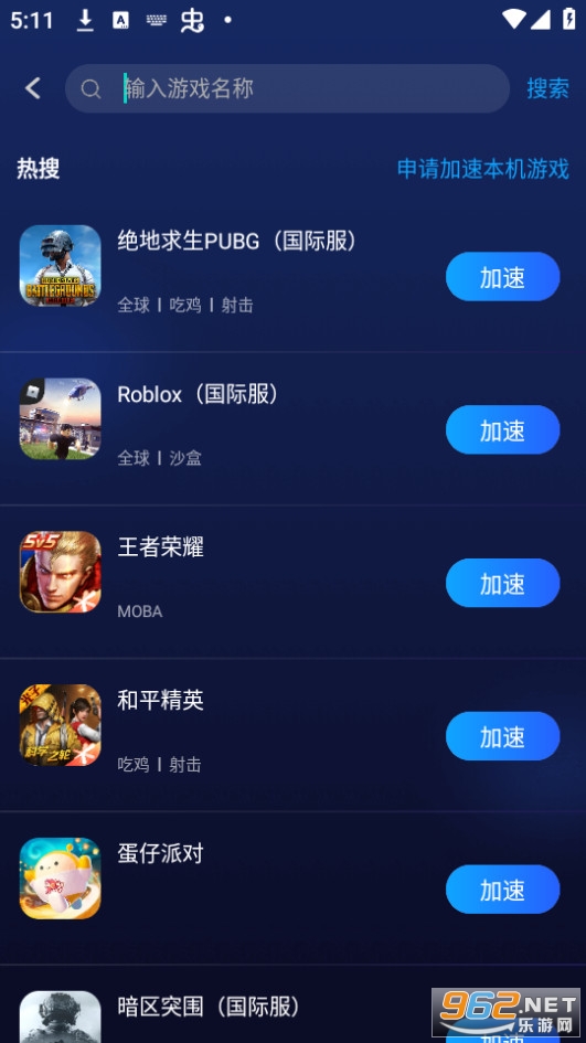 热门游戏加速推荐:PUBG绝地求生、Switch喷射战士3、王者荣耀国际服、荒野乱斗、Apex手游、DNF手游、Switch糖豆人、第七史诗等。