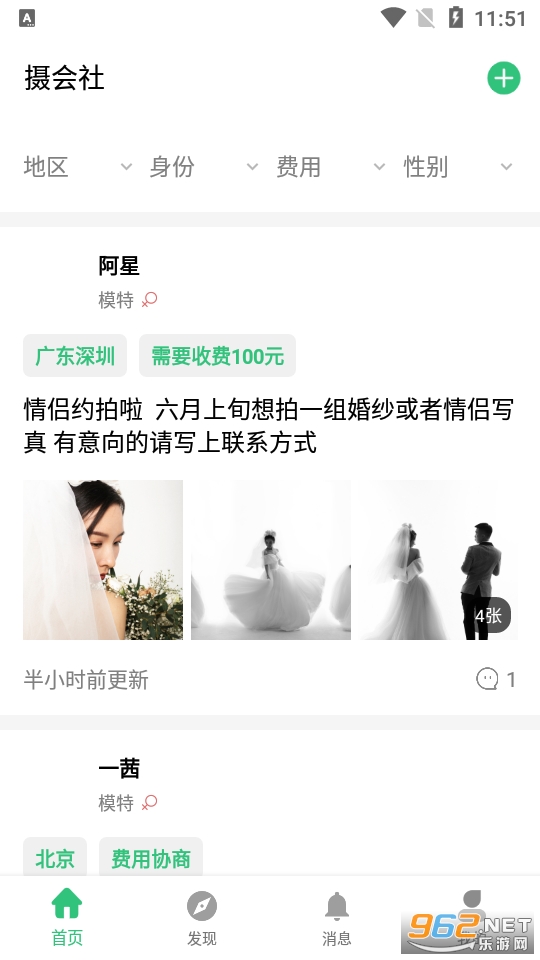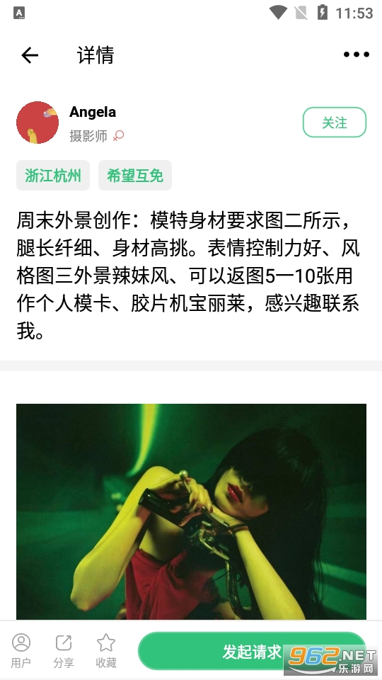 用户可以根据地区浏览摄影师和模特发布的各种信息,可以方便地向别人提交自己的拍摄请求。