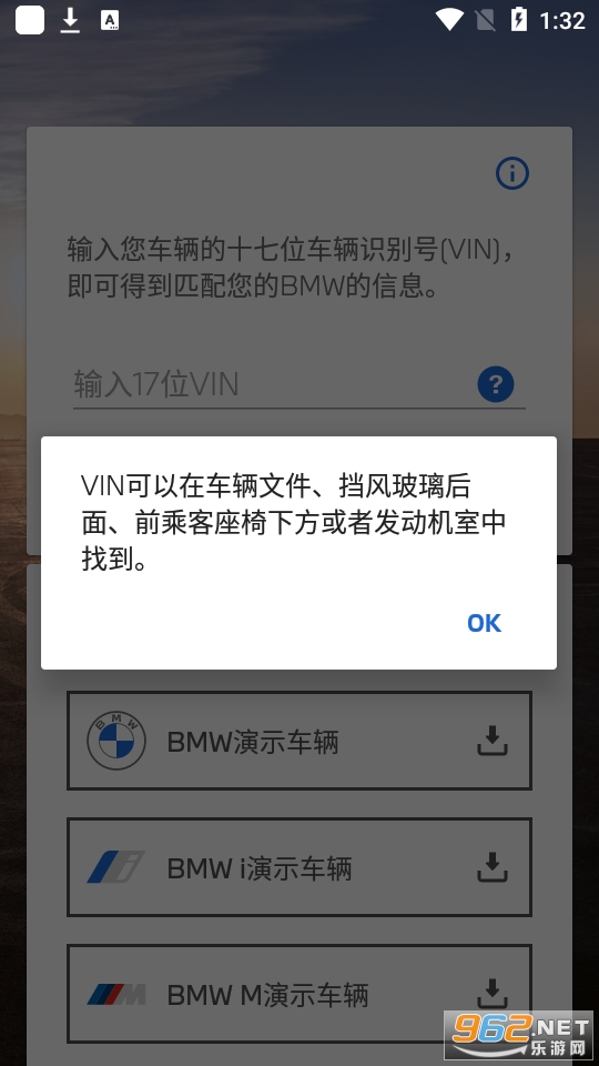 BMW驾驶指南app首次使用时,您需要连接网络。输入底盘号码(VIN)之后,下载与您车辆匹配的用户手册,用户手册无网络连接也可用。在Driver’sGuide中可以管理多个车辆。