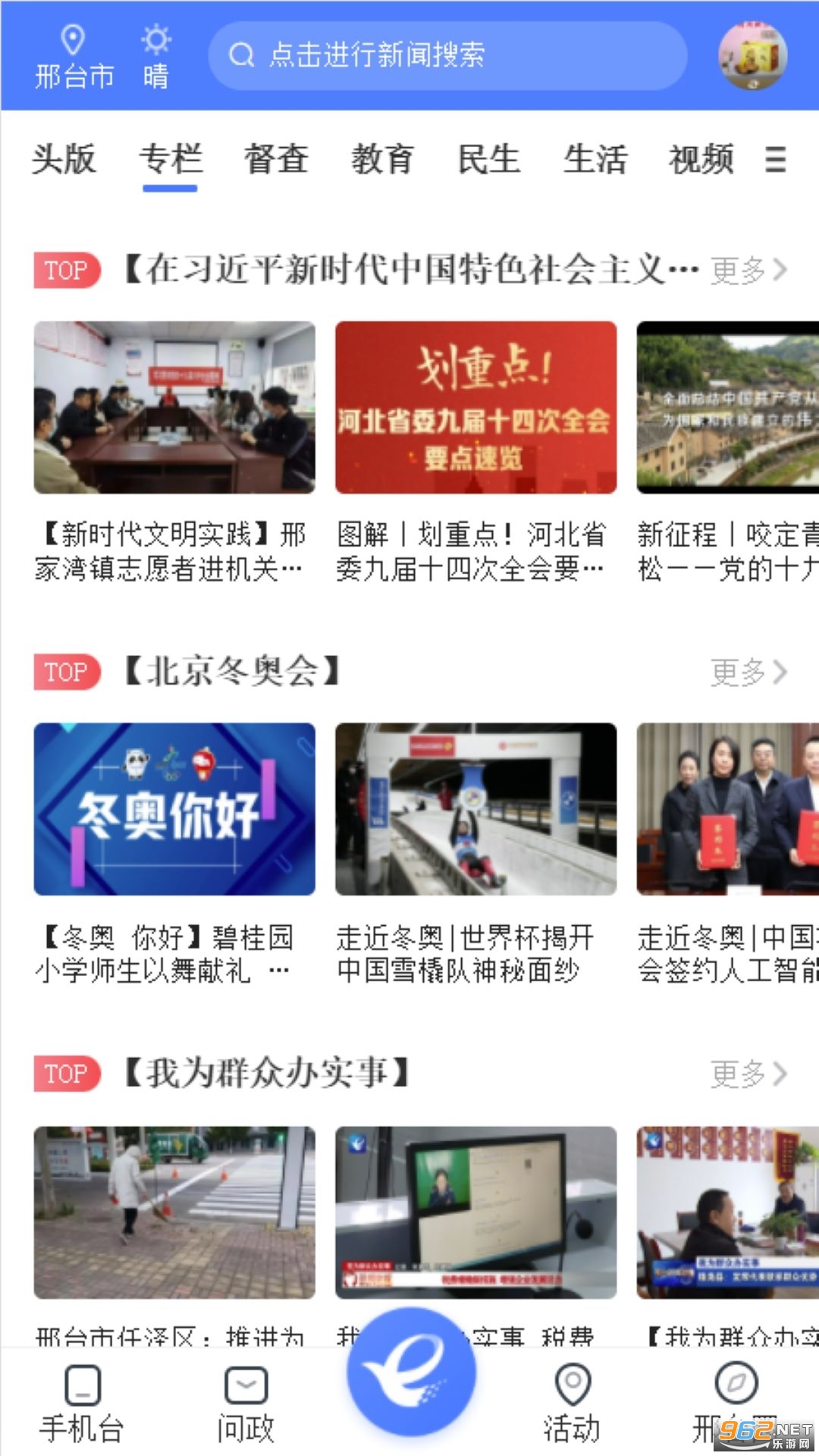 非常好用的邢台广播电视台官方手机端app,可以通过软件查看最新的新闻政务等情况,参与各种问政活动,分类详细,还有专门为邢台人打造的互动圈子。