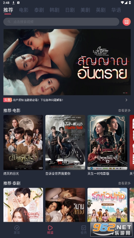 2、热门内容:提供不同的泰剧内容,在线免费观看;