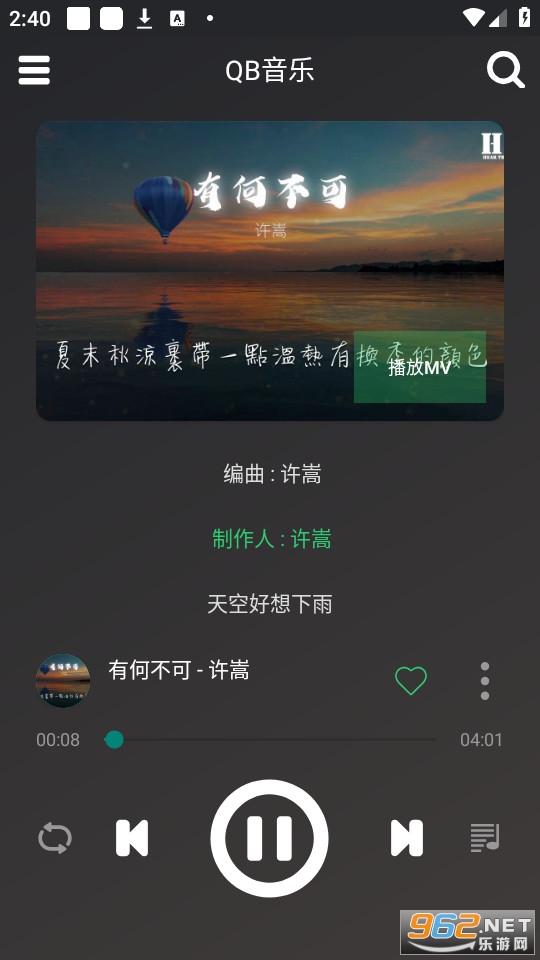 《qb音乐》是一款集音乐播放、发现、分享和社交于一体的音乐平台,为广大音乐爱好者提供了一个丰富、便捷的音乐体验空间。提供了高品质的音乐播放体验。用户可以选择不同的音质进行播放,包括高清无损音质和流畅音质等。同时,App还支持离线下载功能,用户可以将喜欢的歌曲下载到本地,随时随地畅听。拥有极其丰富的音乐资源,免费收听各种你喜欢的音乐。快来下载吧!
