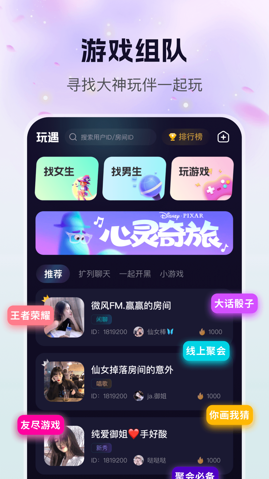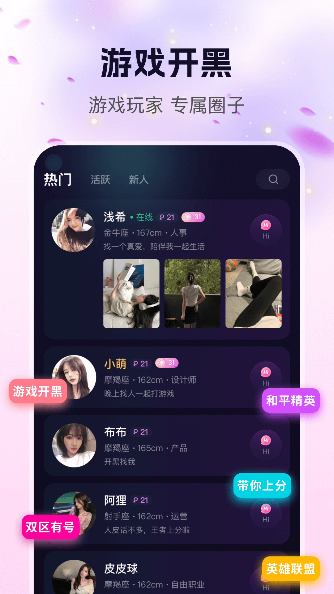 覆盖英雄联盟、王者荣耀等热门游戏,根据你的游戏类型和风格,极速匹配到声音好听、技术超强的大神小姐姐小哥哥们一起玩游戏!