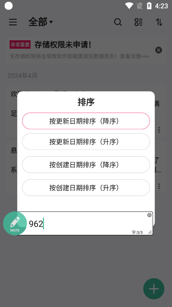1.修复无存储权限删除记事偶现崩溃问题。