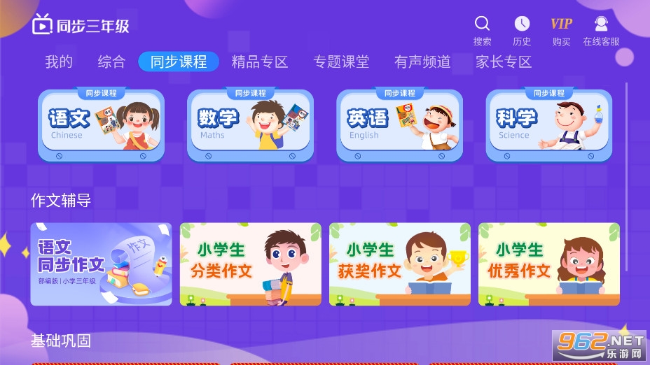 小学三年级同步课堂:语文、数学、英语、科学上下册跟教材完全同步的辅导课程。