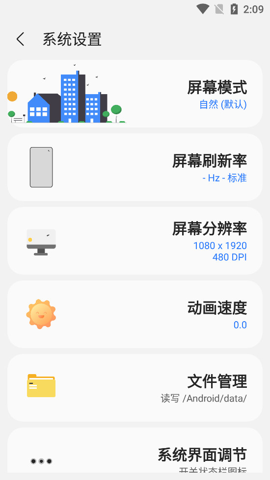屏幕模式、系统文件管理读写/android/data/、系统界面调节、移动网络模式、移动网络频段、暗码功能