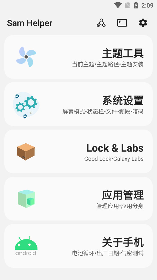 sam helper是一款专为三星手机用户开发的一款三星工具箱,这款软件体积小巧,功能强大,它可以帮助用户更好检测手机硬件,可以实时的查看手机数据,还能够提升您手机的硬件软件的灵敏度,各种高级设置都能通过这个软件去调节移动网络界面翻页方式都能够在线更改,非常实用方便,除此之外,通过sam helper软件用户还可以根据自己的喜好来设置主页,随时美化桌面,让你的屏幕焕然一新,并且还可以用来修改屏幕的比例、帧数、哦荧幕模式和动画速度等等,让你手机屏幕显示更加符合你的心意,可以为用户带来非常好的手机使用体验感。