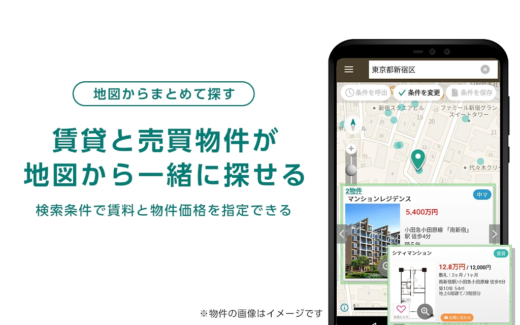 您可以在地图上搜索房屋,包括出租房产、新建公寓、二手公寓和新建独立屋。由于可以在地图上搜索,因此您可以在仔细检查房产周围环境的同时找到您所选择的房屋。