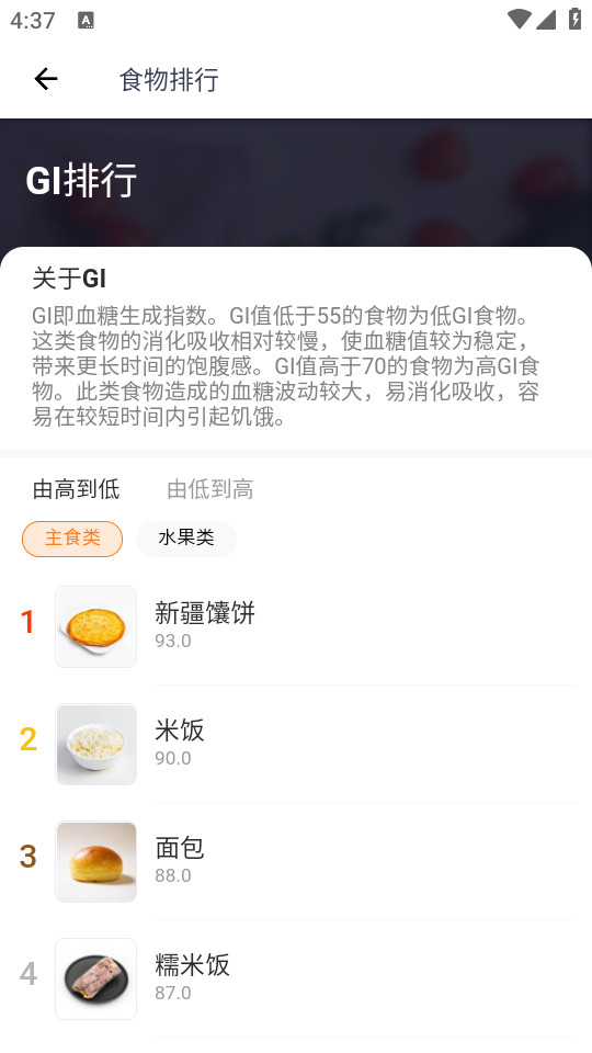 2.选择你需要查询的食物,可以在上方搜索框中搜索,也可以在排行榜中直接点击