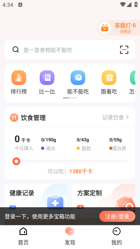 扫描食品条形码,秒查食物信息(热量、营养元素等等);