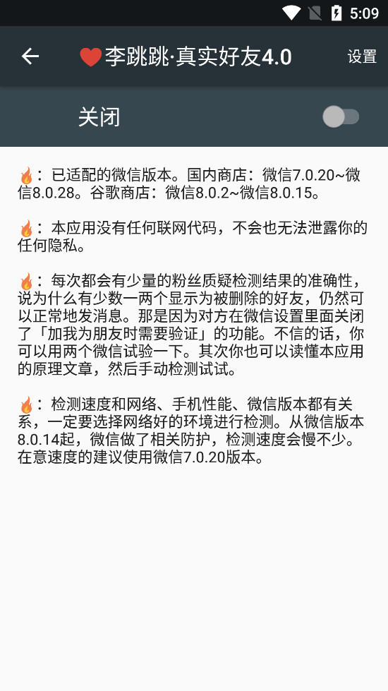 每次都会有少量的粉丝质疑检测结果的准确性,说为什么有少数一两个显示为被删除的好友,仍然可以正常地发消息。那是因为对方在设置里面关闭了「加我为朋友时需要验证」的功能。不信的话,你可以用两个试验一下。其次你也可以读懂本应用的原理文章,然后手动检测试试。