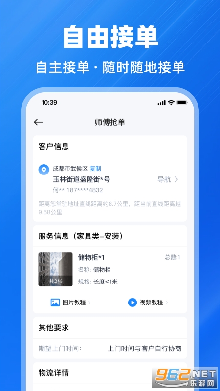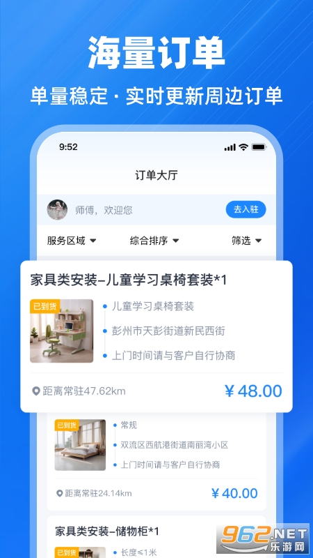 1、就近派单:众多周边优质订单系统实时智能推送,确保每位师傅都能匹配高质量订单。