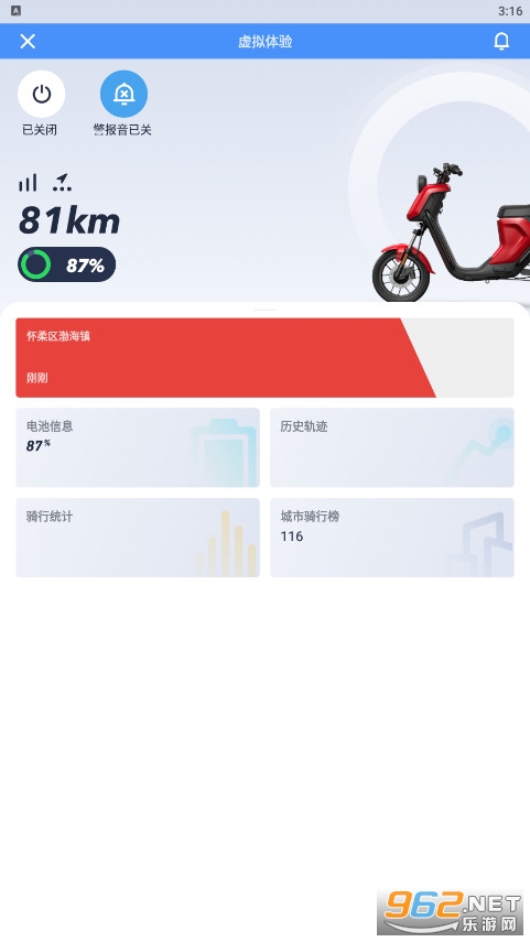 在城市中一辆电动车用来代步也是非常方便的,就是怕遇到窃格瓦拉偷电瓶偷车的,而这款app能够与电动车实时链接,保证电动车的安全,推荐给有需要的用户。