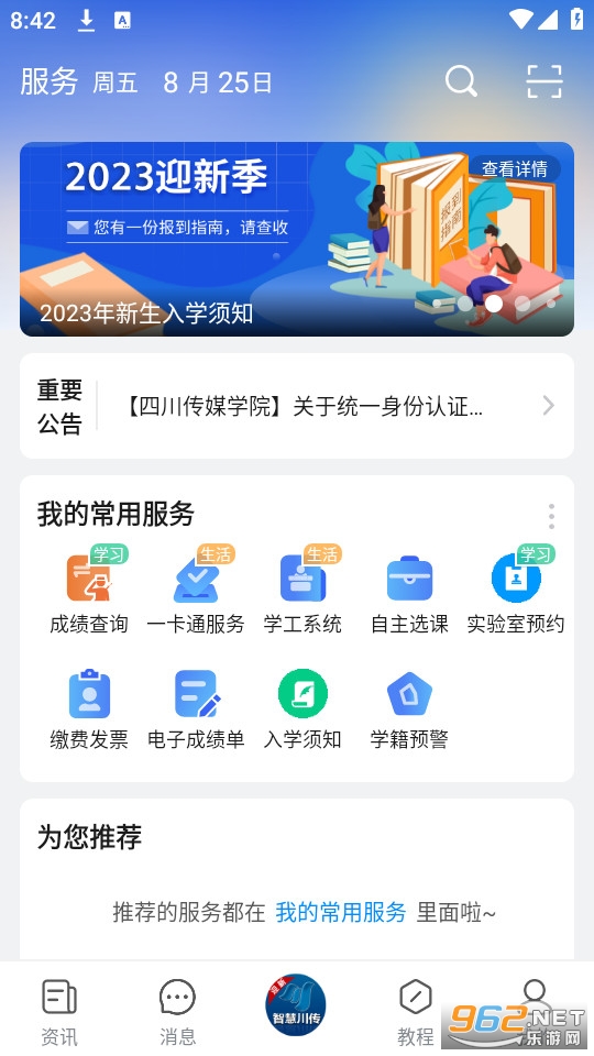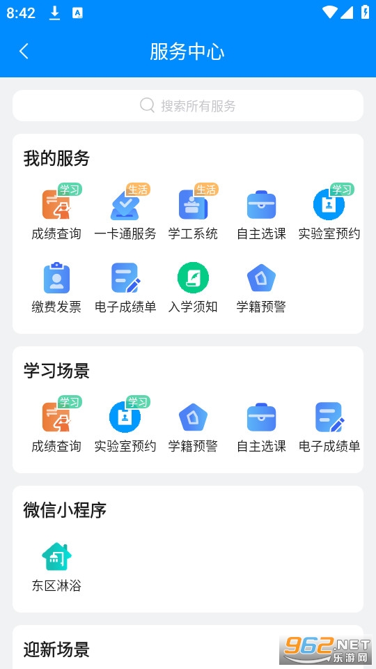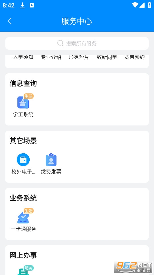 1、通过校园服务、校园场景、专业介绍、注册说明、新生用品、志愿者等服务。
