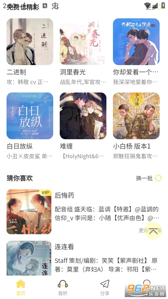 1、在这里有很多的广播剧,超多人气cv作品这里都有,优质的声音都可以听;
