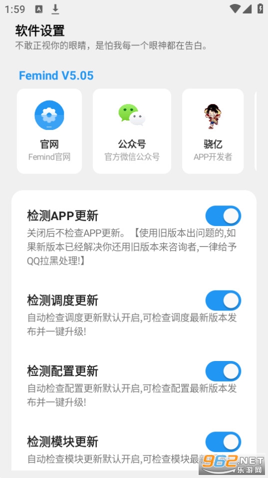 Femind调度是作者铁人司机为一些安卓机型制作的手机提效优化调度,旨在为用户提供多功能集成、同处理器通用、多模式兼容、小巧高保密的定制化综合调度。目的是为用户在日用时保证流畅的前提下适当地勒紧裤腰带尽可能节省电量,提高效率,而在游戏时适当解放性能,使其不撞温控,却又有足够的性能进行输出以稳定游戏体验。Femind调度不提倡无脑关核,也不提倡游戏无脑开核。