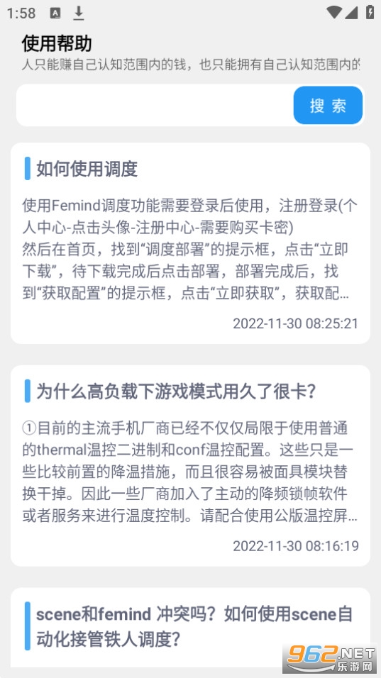 《femind调度》是一款非常好用的手机软件,轻松的通过软件来对手机cpu进行全方面的监控调节,功能强大,教程以及使用说明也说的非常详细,能够不断的优化你的手机功能。有需求的话就快来下载吧!