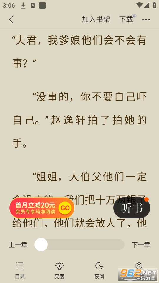 3、支持自动阅读和翻页,每本小说都可以使用听力功能,解放眼睛阅读。