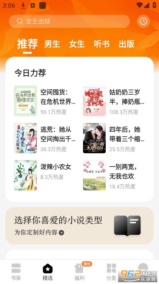 内置大量经典热门小说题材,全部免费阅读