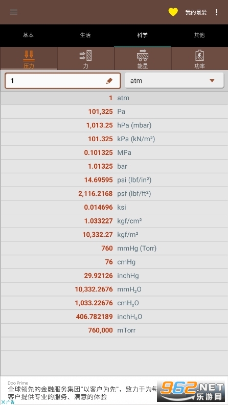 -科学:压力、力、功(能量)、功率、扭矩、流量、电流、电压、密度、粘度、浓度、天文学