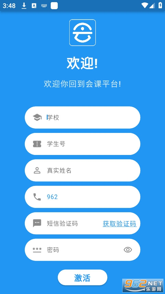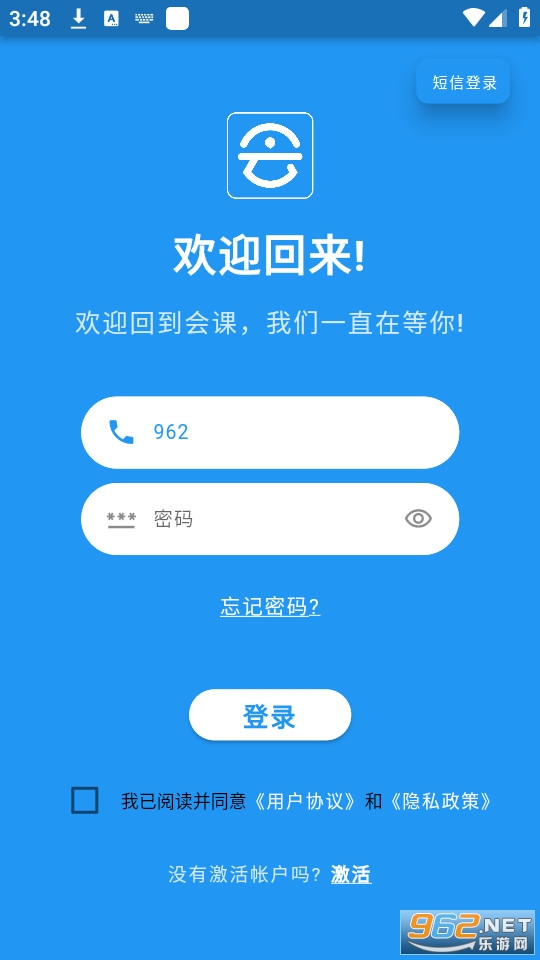 2.打开会课学生端app,有账户的话就直接输入手机号和密码进行登录