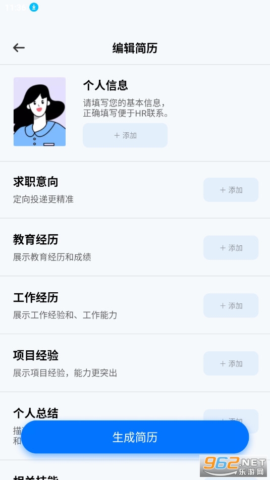 无忧简历是一款帮助用户快速创建个人简历的APP。通过简单的填写,用户可以生成一份清晰、简洁的个人简历,方便应聘者在求职过程中展示自己的能力和经历。