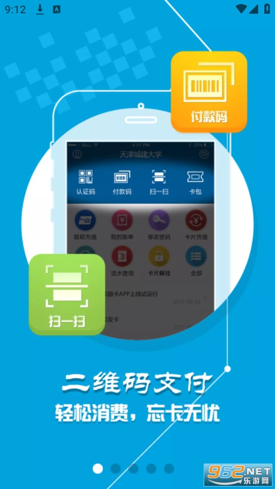 城大通是一款面向校园的一卡通服务APP,在传统卡消费、认证的基础上增加了二维码功能,为校园用户提供专业、全面的移动一卡通服务。