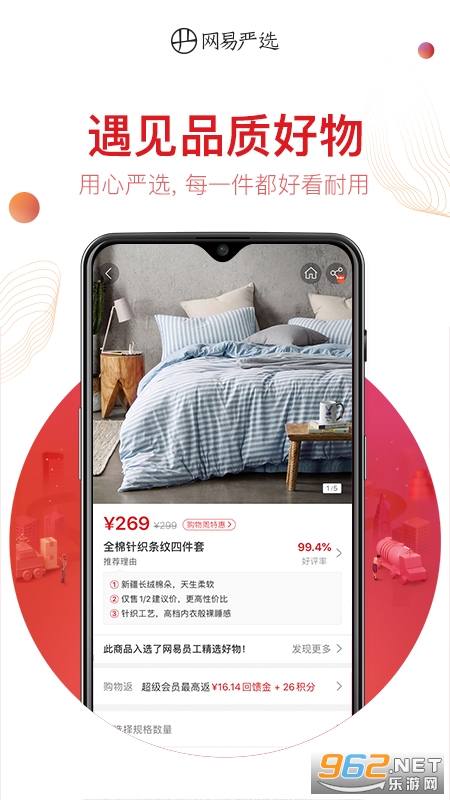 网易严选,网易原创生活类电商App,秉承网易一贯的严谨态度和“平价优品”的理念,主打床品、日用品、厨具、食材等方面,打破传统品牌垄断模式,深入国际品牌制造商源头,严格把控生产环节!