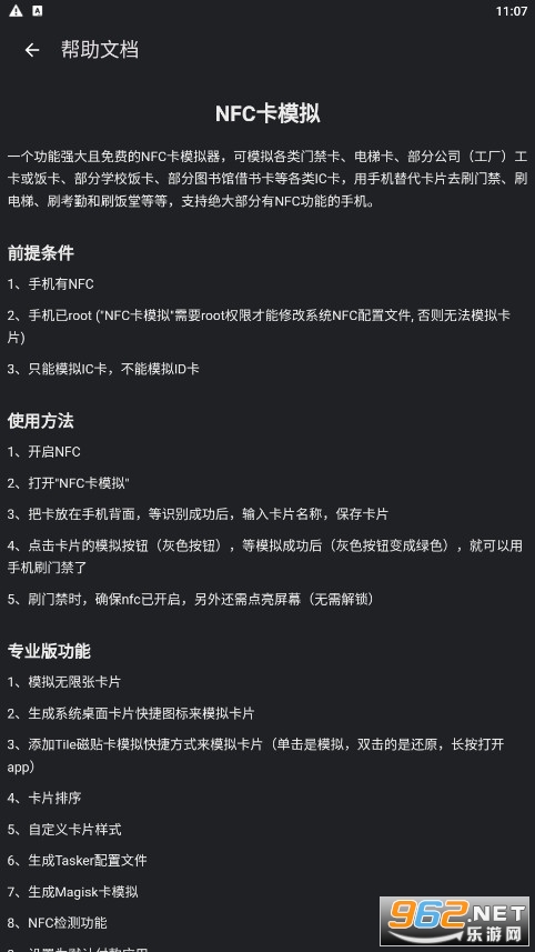NFC卡模拟是一个功能强大且免费的NFC卡模拟器,可模拟各类门禁卡、电梯卡、部分公司(工厂)工卡或饭卡、部分学校饭卡、部分图书馆借书卡等各类IC卡,用手机替代卡片去刷门禁、刷电梯、刷考勤和刷饭堂等等,支持绝大部分有NFC功能的手机。
