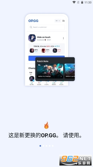 1、下载安装好opgg手机客户端中文版,运行软件,选择需要查询的地区,比如韩服;
