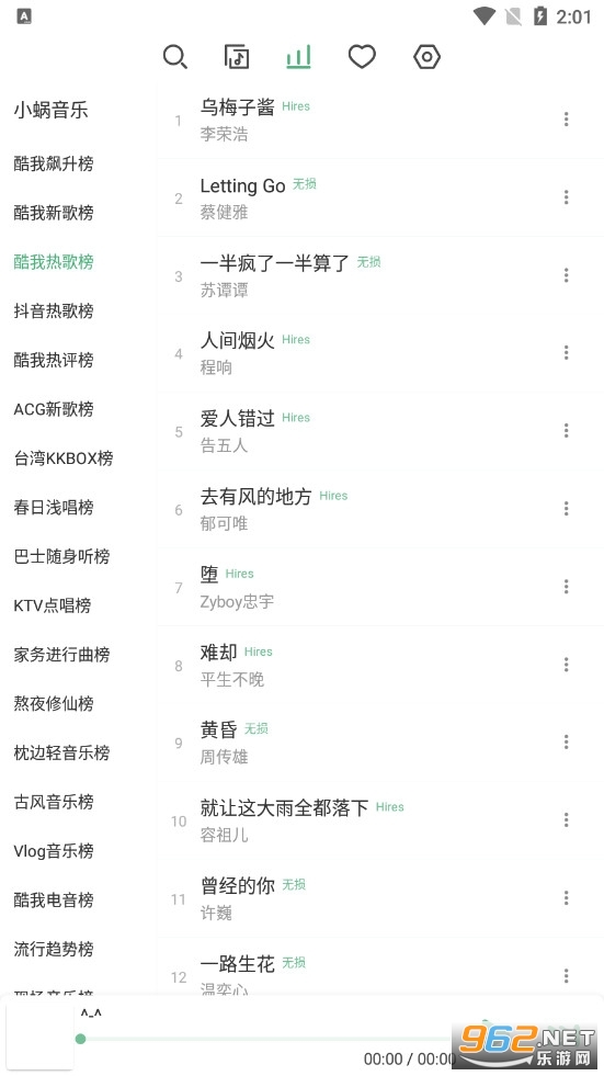 3.歌曲排行榜,各种类型的排行榜,根据你的兴趣可以自由选择试听,还可以在线下载。
