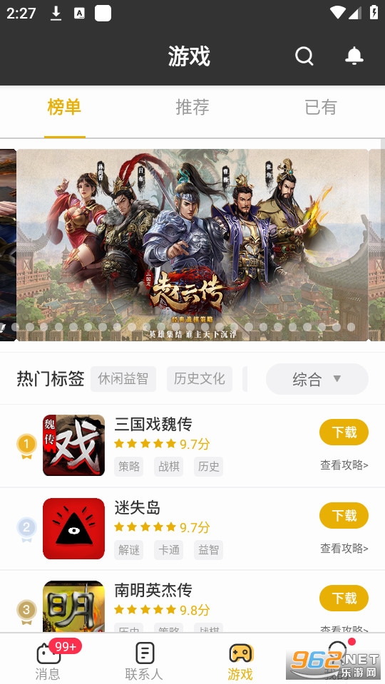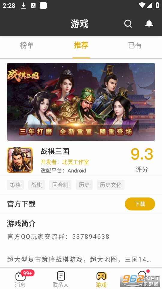 3、【游戏分享】支持游戏发布和下载,资深游戏玩家可以为您推荐热门游戏。“最近流行”和“最新发布”是完美的结合,让你不再担心游戏短缺。