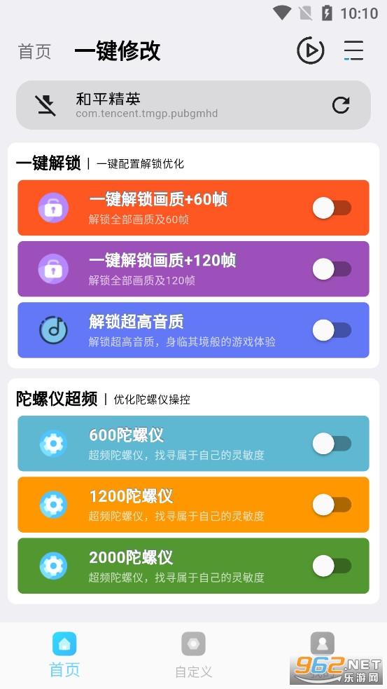 《画质魔盒官方正版》是一款实用的画质修改工具,朋友们可以利用画质魔盒app来一键修改游戏的画质为60帧率120帧率,可以开启超高音质,还有着陀螺仪超频可以设置,可以自定义画质和陀螺仪数据,让你轻松修改游戏的画质。