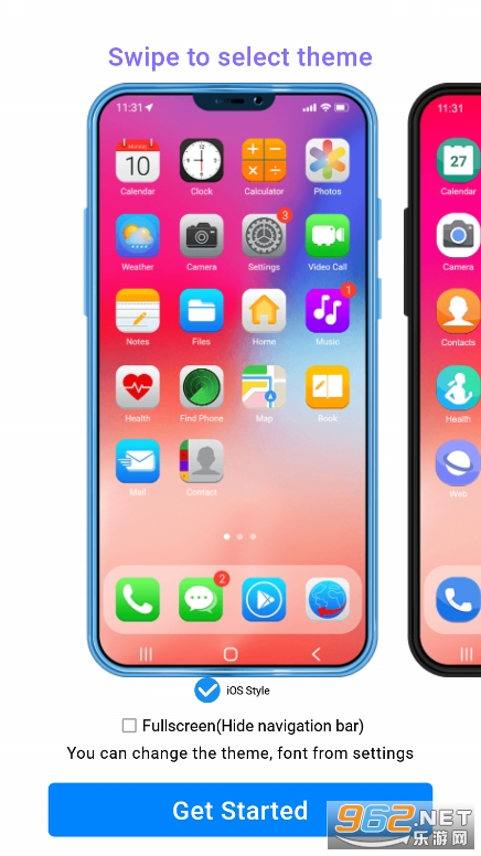 1.在使用的时候,也是非常的方便的,可以随时的快速切换,一键切换苹果.安卓主题。