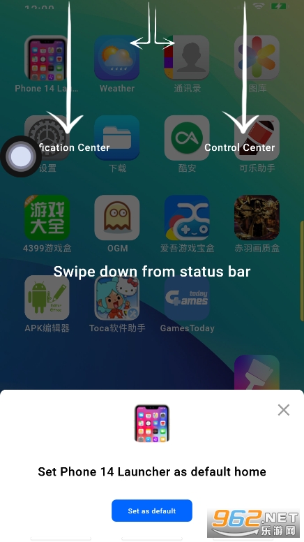 3.包括了各种桌面小工具,将自己的安卓手机变为iOS系统的仿生桌面。