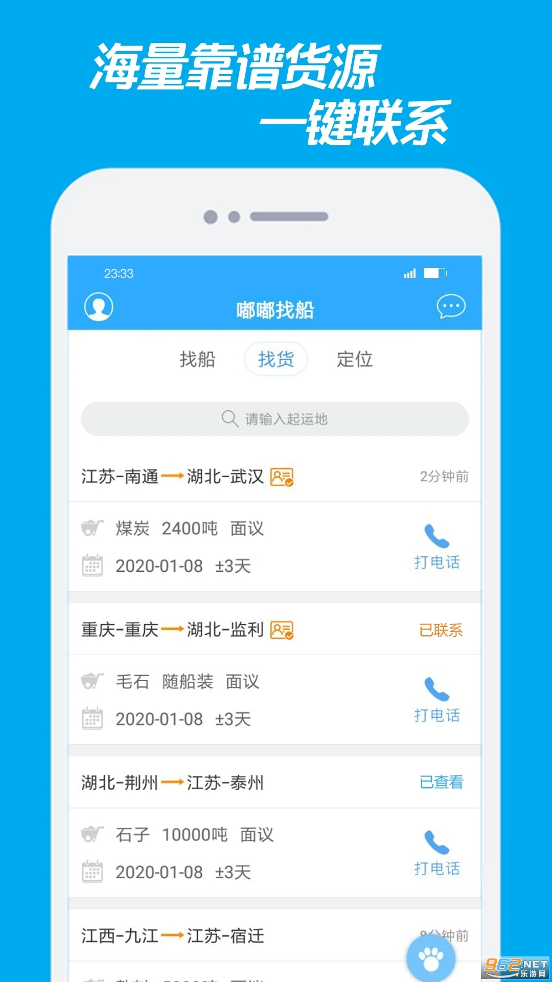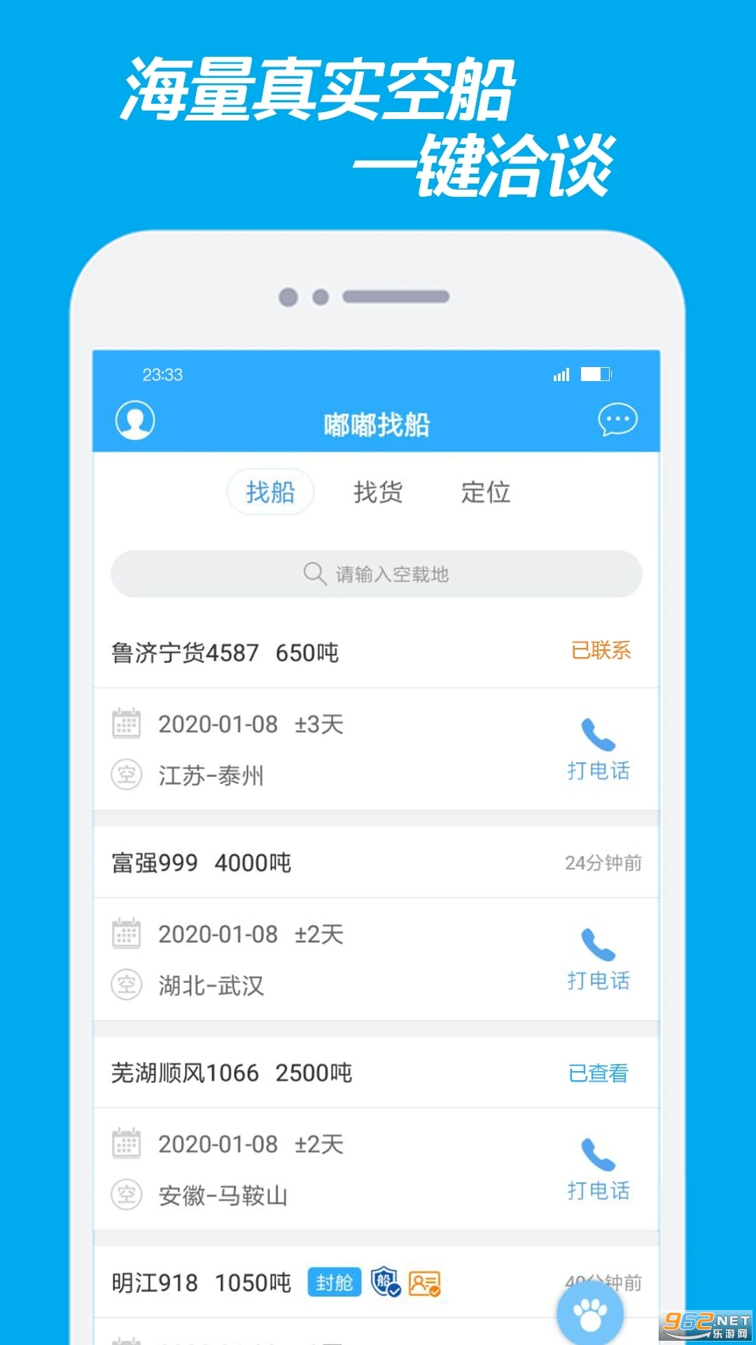 船货预约与一键拨号:每天更新海量空船、货源信息,覆盖长江全线、运河及其它内河,一键拨打电话,轻松实现船货匹配。