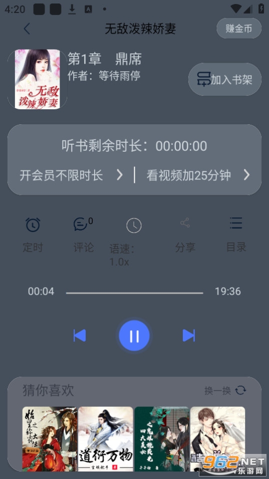 2、实时听书模式,一键开启确实简单,操作也方便;