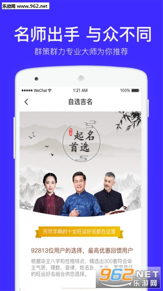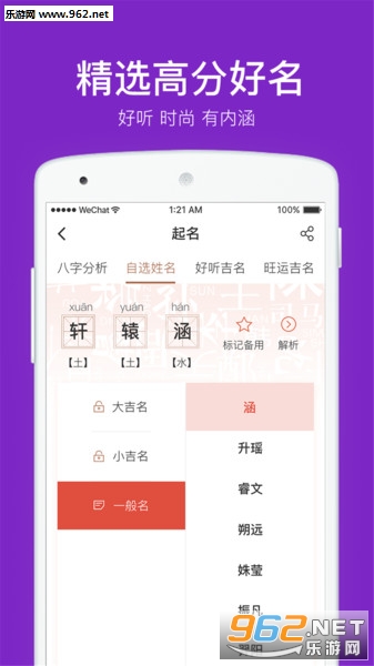 提供优质的起名,起名字,取名,取名字,改名,改名字,解名一站式服务的专业起名取名解名改名测名的软件大全,是真正的国学起名取名软件。app中包含生肖喜忌、字义音义、性格特点以及工作方向推荐,是宝宝起名字取名字的起名宝典,好听助运,好的人生,从好名开始,是明星准爸准妈强烈推荐起名、取名、宝宝起名、宝宝取名的取名软件,是爸爸妈妈们起名大全。