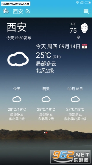 一款简洁清新的天气预报软件,可查看全国主要城市的天气信息。包含了2000多个县市的实时空气质量指数;并加入雾霾预警。高精度的天气效果,实时的天气预报数据,全新背景页设计,高品质的体验。主页涵盖了主要天气数据、人性化的操作体验,让您随时随地知晓最近天气详情,可查询未来一周天气预报和生活指数,让您轻易的掌控近期温度变化,便于及时增减衣物,轻轻松松享受生活。