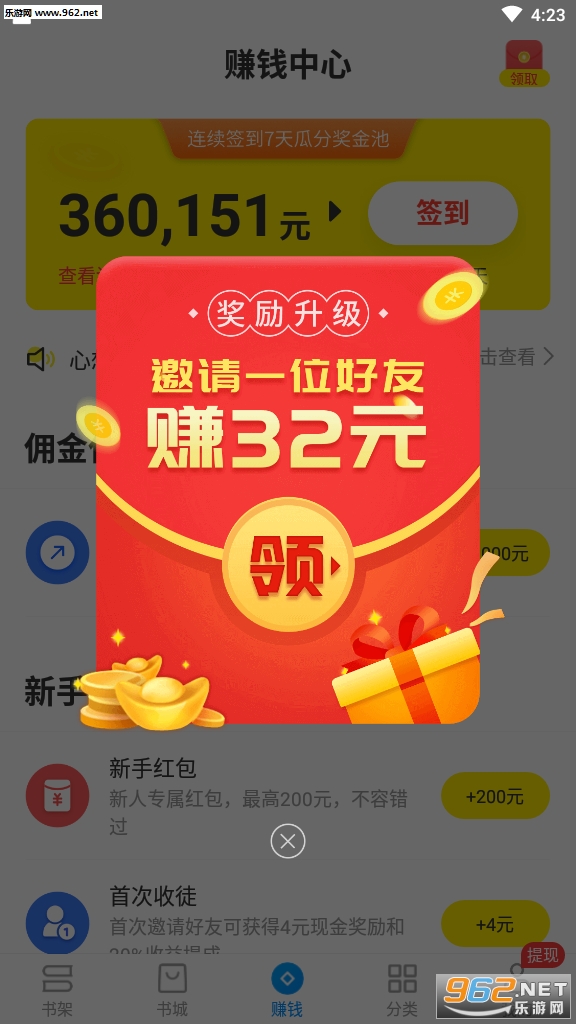 一款全新上线的看小说赚钱app,这里为用户提供了最简单的赚钱模式,最火的小说这里都包含了,还能做任务赚钱,一举两得谁不喜欢,快来试试吧!
