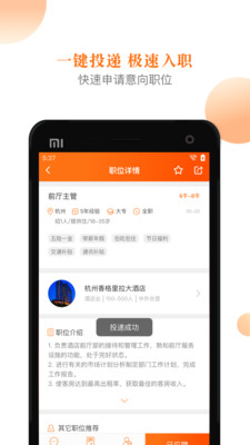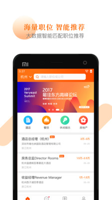 《最佳东方安卓版》是一款平台类型的找工作软件,但它与前程无忧、智联招聘、纳杰人才等大型招聘公司不同之处在于,它是专攻于酒店专业的求贤、求职平台,能够让有意从事于该行业的用户有较好的求职氛围。